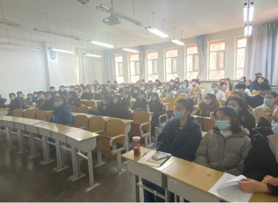 地理科学与旅游学院在校无课研究生在昆仑校区合堂楼302教室,参加线下集中学习,共计105人参加。