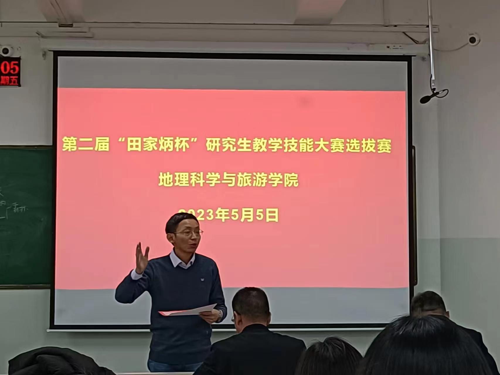 为进一步加强地理教育硕士专业学位研究生教育教学实践能力的培养、促进地理教育硕士的核心素养提升,第二届“田家炳杯”教育硕士研究生教学技能大赛选拔赛于2023年5月5日在我院成功举行。大赛选拔赛环节包括教学设计、课堂教学、现场答辩三个部分。本次大赛特邀太阳成集团tyc33455ccwww附属中学蓝毅高级教师担任评委主席,学院李艳红、刘云同、黄佛君、李勇老师组成评委专家组。