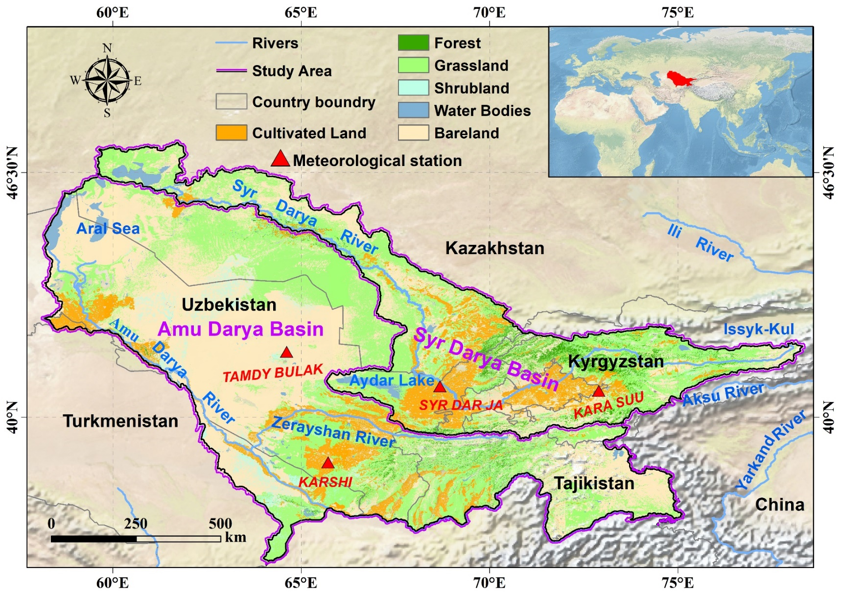 该研究成果于近日发表在国际学术期刊Science of the Total Environment (中科院一区TOP,IF=9.8 ,https://doi.org/10.1016/j.scitotenv.2024.174047)。太阳成集团tyc33455ccwww韩永龙(硕士1年级)为第一作者,中国科学院新疆生态与地理研究所马晓飞(副研究员)和王勇辉(教授)为通讯作者。该研究成果得到天山英才青年人才拔尖项目 (2023TSYCCX0078)、新疆维吾尔自治区重点实验室开放课题 (2023D04073)、第三次新疆科学考察计划 (2021xjkk0903)、中国博士后科学基金 (2021M703470)、国家自然科学基金 (42101302、42261051) 和自治区研究生创新项目 (XJ2023G230)的资助。